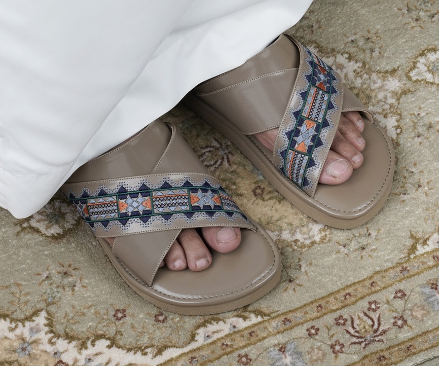 حذاء صندل رجالي مطرز بتصميم السدو باللون البني بأسلوب عصري
