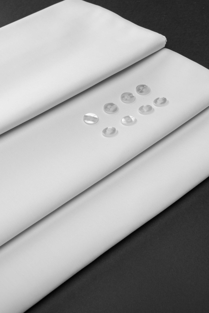 قطعة قماش ياباني تويوبو باللون الابيض تتكون القطعة من 5 امتار عرض واحد وعدد 8ازرار تكفي لخياطة ثوب واحد